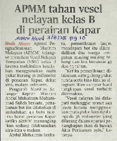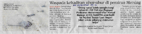 (Utusan Malaysia, 2025-11-13)Khazanah marin seperti batu karang dan ikan hiasan di perairan Pantai Tanjung Biru hingga ke Tanjung Tuan di sini, diancam kegiatan pencurian. -