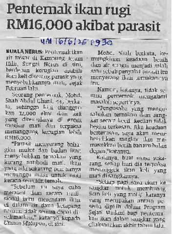 (Harian Metro, 2025-12-01)Hampir 100 penternak ikan sangkar di sini berdepan kerugian mencecah ratusan ribu ringgit apabila banyak ternakan terlepas. -