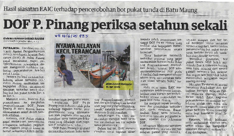 (Harian Metro, 2025-12-01)Monsun Timur Laut (MTL) yang melanda tidak dianggap sebagai satu musibah sebaliknya membuka pintu rezeki kepada nelayan Sungai Kinta di sini memperoleh pendapatan lebih tinggi berbanding kebiasaan. -